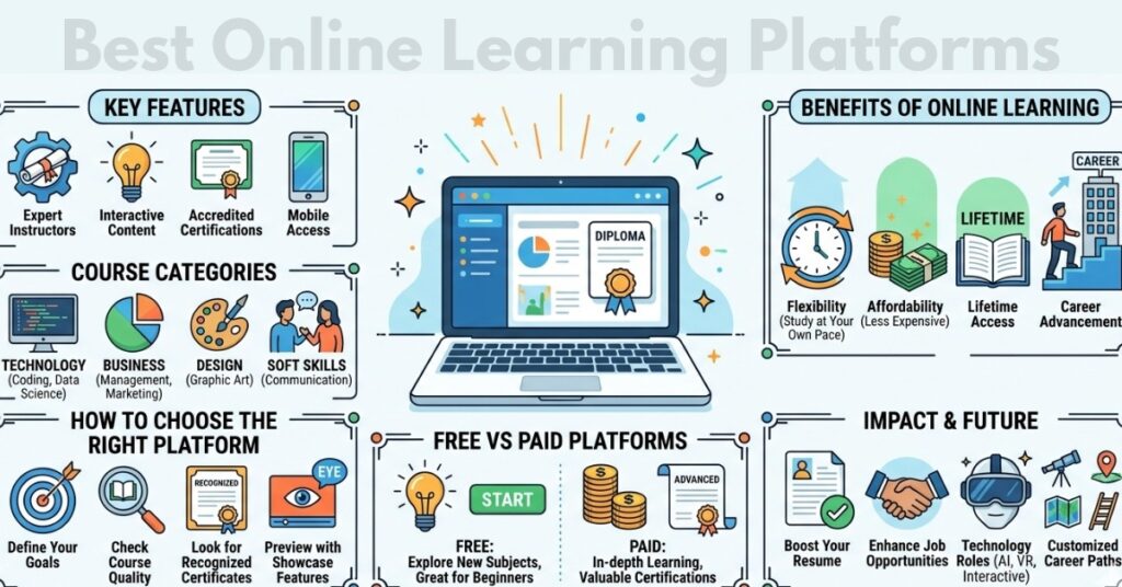 Quality platforms offer professional-based courses, interaction, and accredited certification. They also provide mobile access, which enables users to study wherever they go. The Best online learning platforms emphasize user friendliness, organized learning cycles, and practical use.
